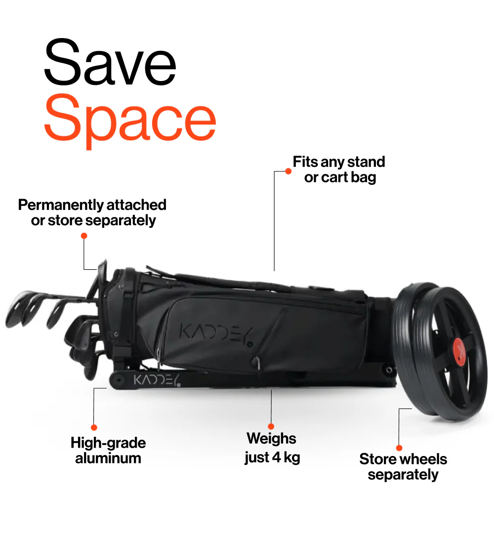 Turn heads on the course with the new Kaddey Switch+ — the perfect blend of style and performance. Crafted from high-grade aluminum, its ultra-compact frame saves space without compromise. Push on fairways, pull uphill, and let the XL wheels adapt effortlessly to any terrain. With Kaddey by your side, you’ll move smarter, play better, and focus on what truly matters: your game.